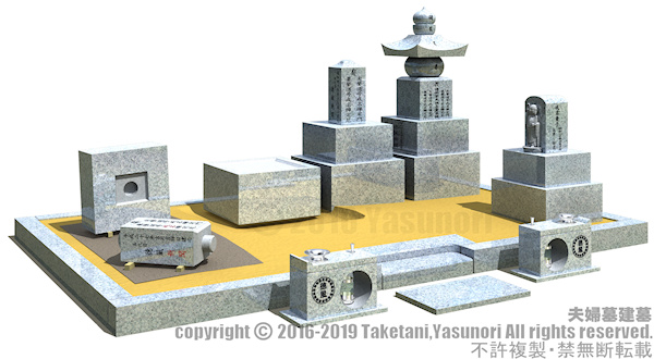 二重枠により運命を保護し。後ろ高で、陽の気をより強く得ます。また、それぞれの業種により、石塔のバランスを考慮します。
